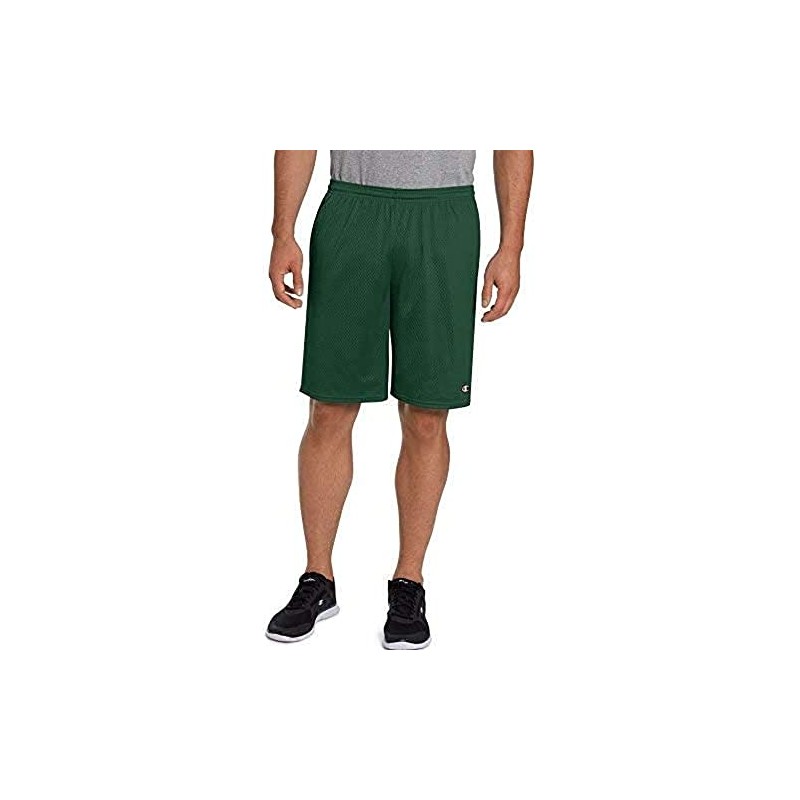 Champion Men's Long Mesh Short with Pockets, Dark Green, Small