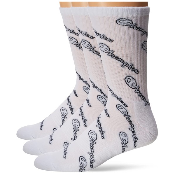 Champion mens 3-pack Hollow Script Crew Sock, White, 10 13 US