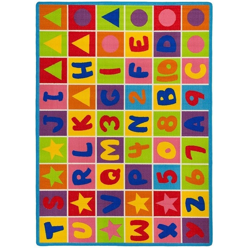 champion rugs Kids/Baby Room/Daycare/Classroom/Playroom Sit Spot Area Rug Abc's Alphabet Letters Numbers Shapes Play Mat Fun Educational Non-Slip Gel Back (5 Feet X 8 Feet)