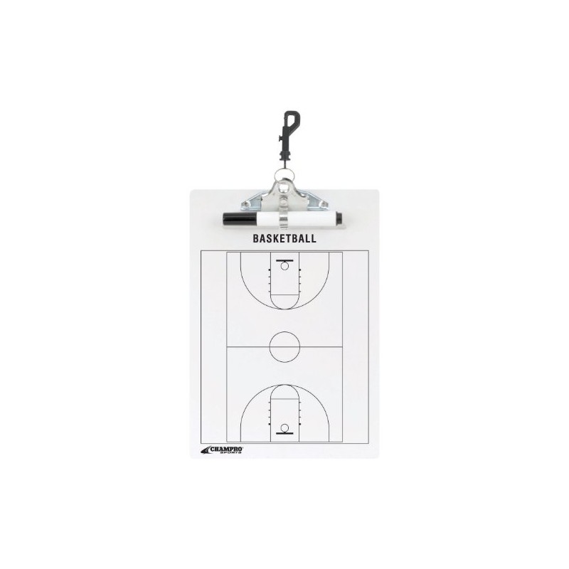 - DUAL-SIDED COACH’S BOARD: This basketball coach’s board has a full court diagram on one side and a half-court on the other.