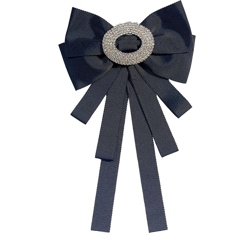 Chamvino Rhinestone striped Ribbon big bow tie exaggerated large bow tie sweater neckline Brooch(Black)