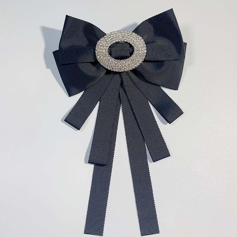 • 【Fashion】A new big bow with a shiny rhinrhinole in the middle and a striped ribbon hanging down, beautiful and fashionable. A pin in the back can be used as a brooch, collar tie, or pinned to a bag or hat as an ornament.