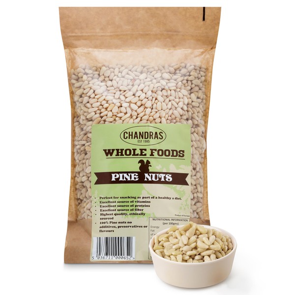 - EXCEPTIONAL QUALITY & TASTE C Chandra Whole Foods 100% Pine Nuts have been carefully sourced, selected, handpicked and shelled to ensure the highest level of freshness and flavour. Ideal for delicious healthy snacking and sweet and savoury baking and cooking