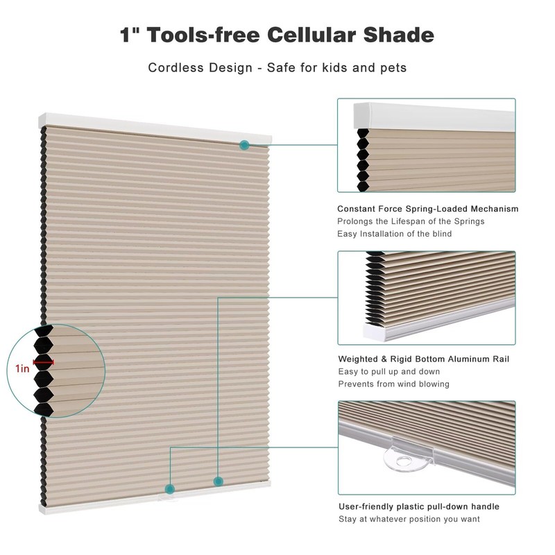 - PERFECT BLACKOUT EFFECT: Made of thick non-woven fabric and built-in aluminum foil coating inside the honeycombs, it's super private looking from outside even at night with the light. Also the cordless shades can block out sun and heat, which will make your life more comfortable