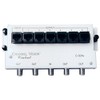 - Supports up to 6 telephone outlets, each up to 4 lines, TIA/EIA-568A and TIA 570 compliant; CAT5e compatible, 4-way RF splitter, RF input compatible from 5MHz-1000 MHz supporting broadband signal, All ports DC and IR passing, RJ45 version