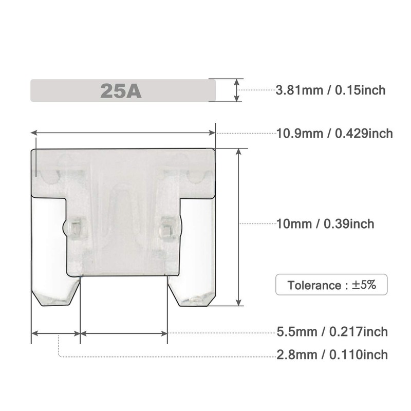 - 【Easy Identification】Current Rating (DC 25 Amp) Marked Clearly on Top of the Fuses and Standard Color Coded Clear,Pack of 10 pcs in one Bag