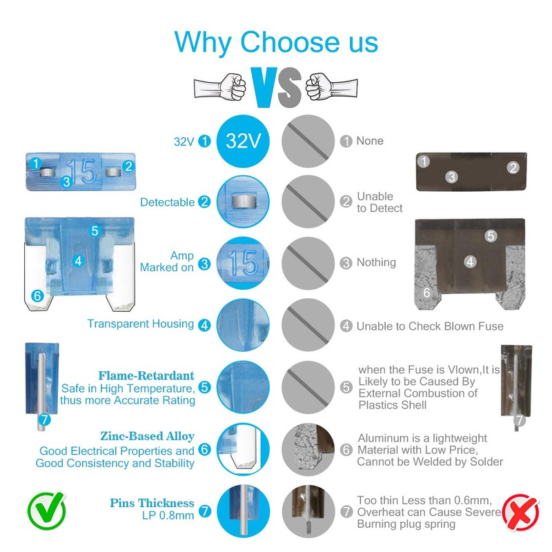 - 【Compatible with】Most Japan/Korea Cars,Electric Bicycle,Trucks SUV,Motorcycle,RV,Camper,Headlamp Headlight,Vehicle,Lawn tractor,Automotive,Automobile,Boat,Blo Fuse Replacement,DOT Requirement.