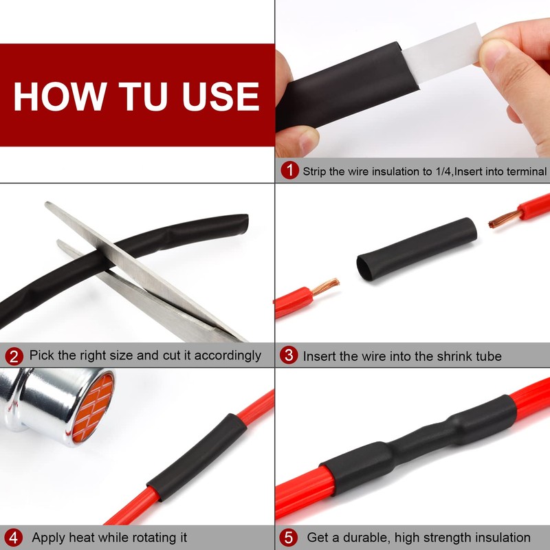 - EASY TO USE - Choose the right size you need and simply slide shrinking tubes over your connection point and apply heat around 70-125℃ temperature evenly with a hot air gun.