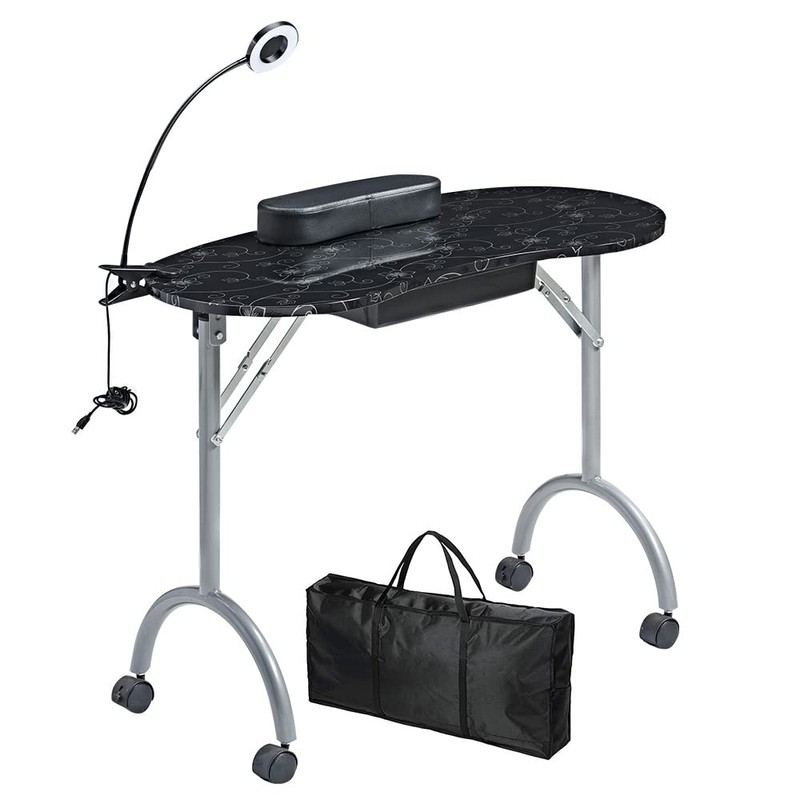 CHAOEEMY Portable Manicure Table,Nail Salon Technician Desk with Large PP plastic drawer、LED-Light、Wrist rest、Carry Bag,for nail salon、beauty salon、home nails painting、tattoo,Black…
