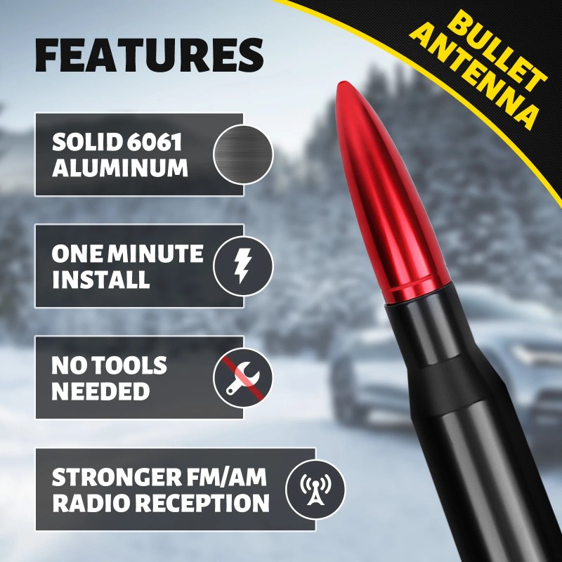 ◆Crafted from premium billet aluminum, this bullet antenna boasts unparalleled strength 5.3 Inch newly designed, you will admire the new improved looks of your vehicle.This antenna makes your truck looks more stylish.