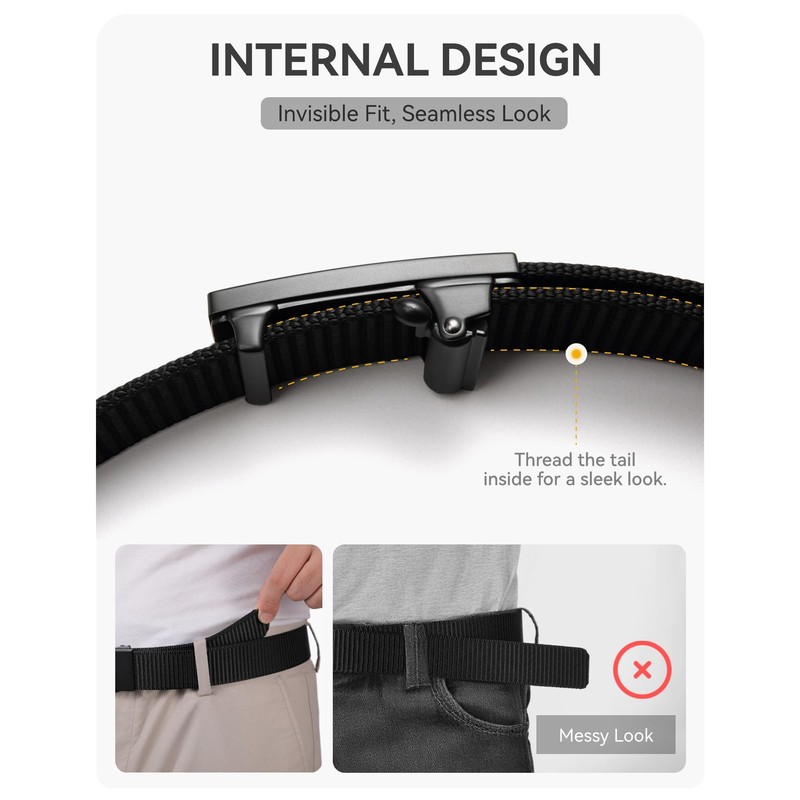 - Sleek, All-Day Comfort - Designed for internal wear, this golf belt offers a smooth, invisible fit that eliminates bulk and ensures maximum comfort throughout the day. Its lightweight and adjustable design provide a tailored look, perfect for both dress pants and casual wear.
