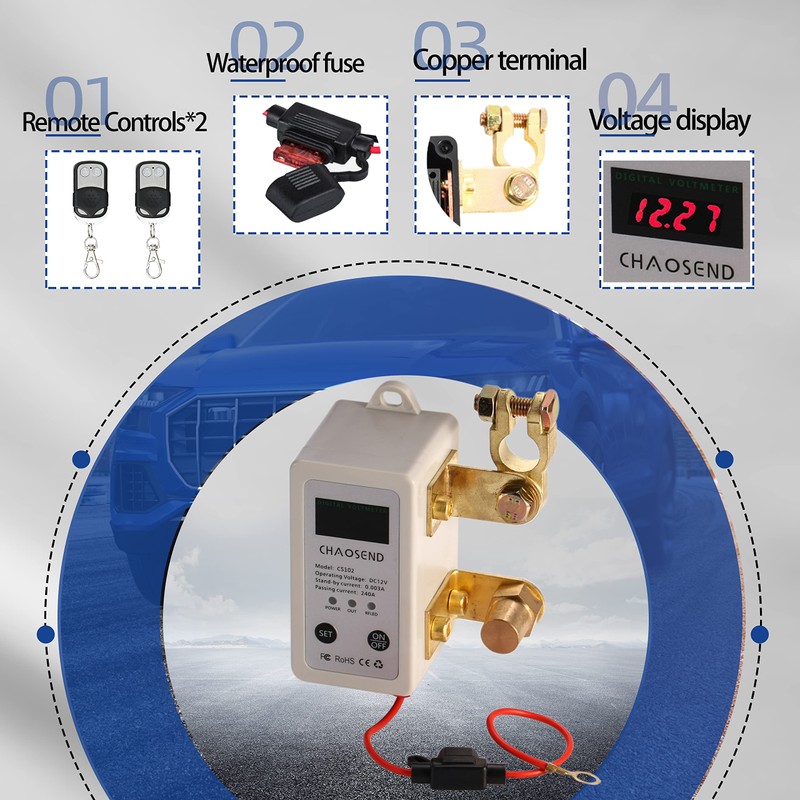 - This is a more convenient car battery disconnect switch system , This kill switch can remotely master kill your car power system, A proper maintenance will extend and protect the battery and engine Life.