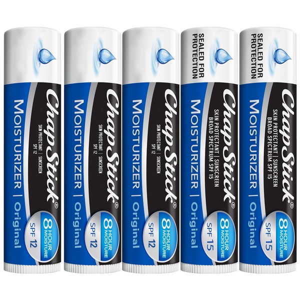 ChapStick Moisturizer 2-in-1 Lipcare 5-Pack (SPF 12 & 15) – Original Lip Balm with Broad Spectrum SPF, Aloe & Vitamin E, 0.15 Oz Ea