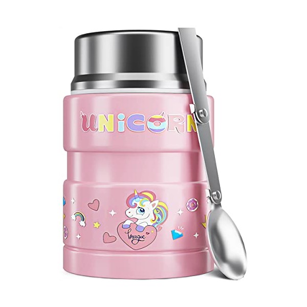 - CUTE UNICORN DESIGN - The cute and fun cartoon design makes mealtimes happier, leakproof design and not afraid of dumping. It's the perfect choice for kids' insulated food jar.