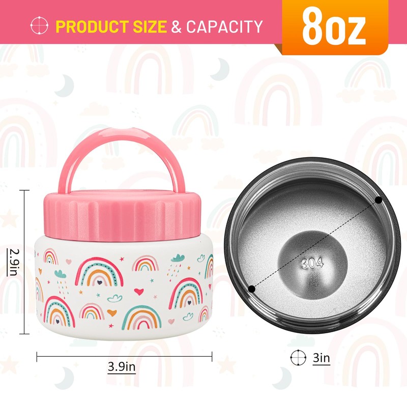 - KID-FRIENDLY DESIGN - The 8oz size is perfect for an average child's meal. The cute print on the food jar with an embossed feel makes your kids love eating with it.