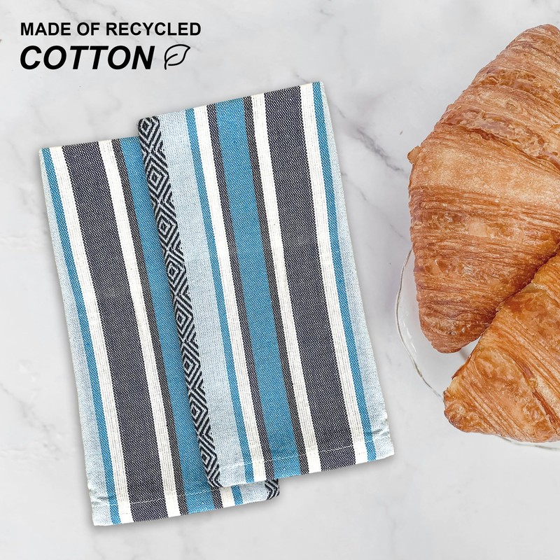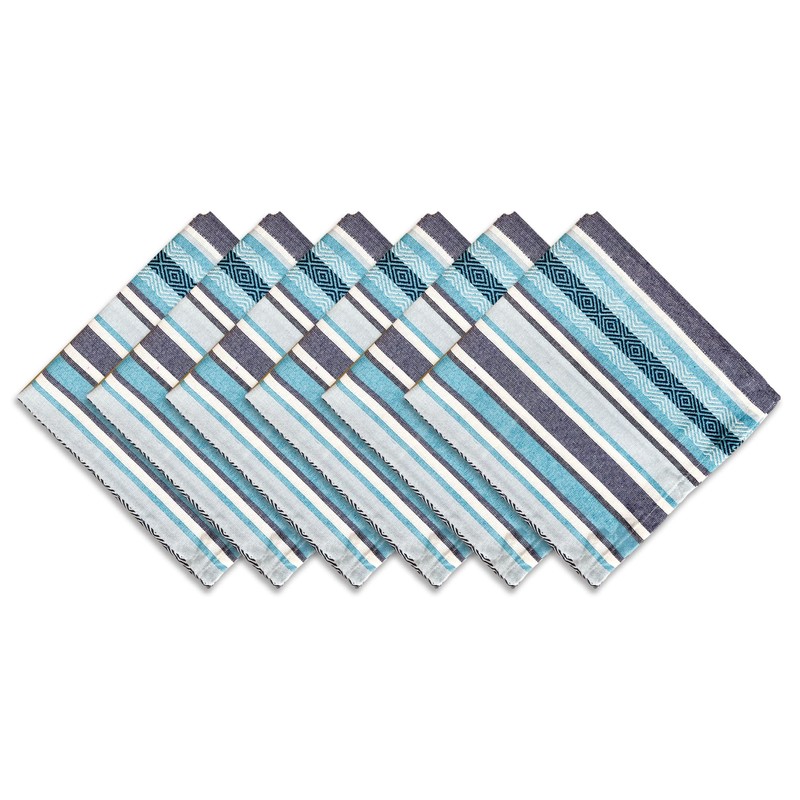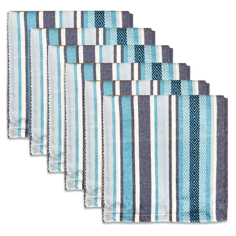 CHARDIN HOME Blues Salsa Stripe Napkin, 18x18 in, Set of 6 Everyday Cloth Napkins, Recycled Cotton, Also Perfect for Holidays, Dinner Parties, Birthdays, Weddings, Hotels