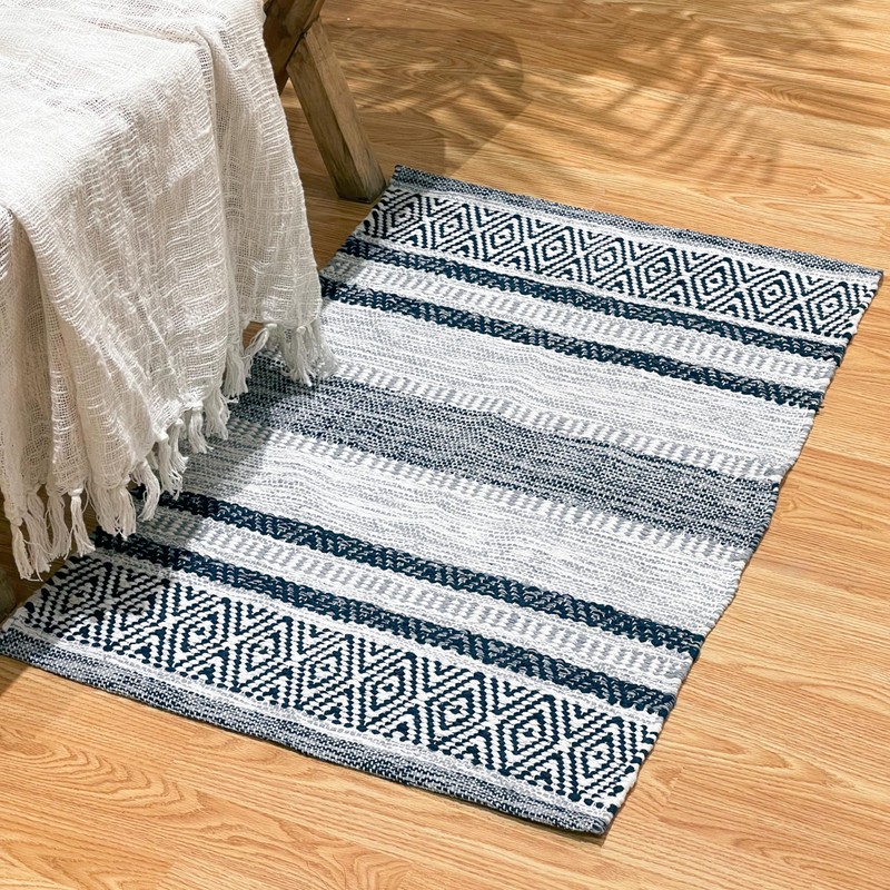 Chardin home Farmhouse Rug 24''x36'' Grey-Navy | Recycled Cotton Hand Woven Rug, Long Boho Rug | Perfect for Hallways, Kitchens, Bathroom, bedrooms, Meditation Yoga Mat | Machine Wash