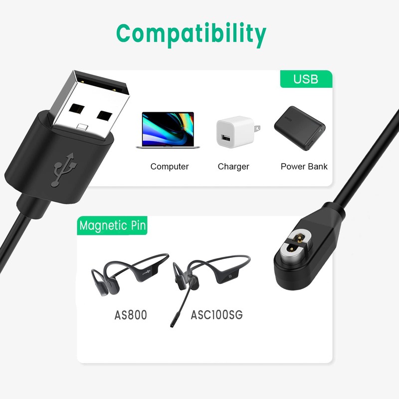 - USB to magnetic charging cord, can easily connect to your AS800 headphones