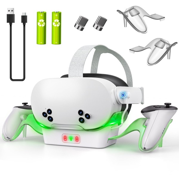 - All-in-One Set for Your Convenience: Our package includes everything you need to enhance your Meta Quest gaming experience. You will receive 1 X Charging Dock for Meta Quest 3S/Quest 3/Quest 2; 2 X Magnetic USB-C Headset Connector; 2 X 2000mAh Rechargeable Batteries, 1 USB-C(C to C) Cable; 1 x User Manual; 12-Month Quality Support; 7/24h Friendly Customer Service. ??? Not sure how to get your device to charge properly? Please contact us any time