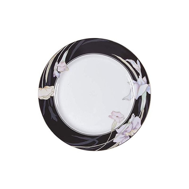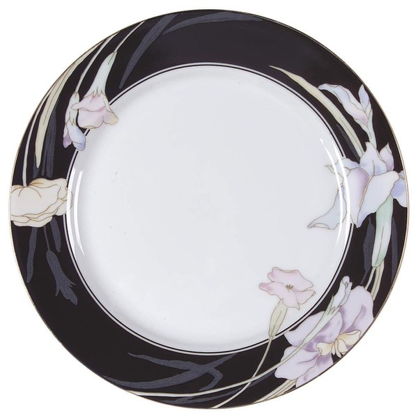 - Charisma Black by Mikasa, China Salad Plate, Active Pattern: No, Circa: 1983, Manufacturer's #L9050, Size: 7-1/2" Diameter, Purple, pink, blue and white flowers on a black banded edge with gold trim and a white center., Small plate used to serve salad to an individual.