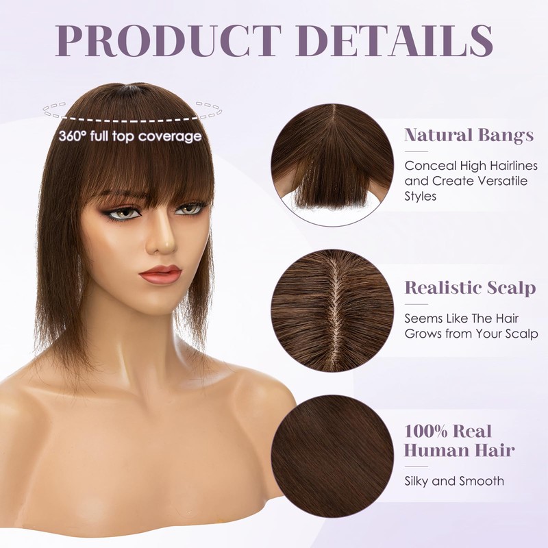 - Human Hair Topper: Made of 100% real human hair, soft and silky, not easy to tangle or shedding. Suitable for curling, straightening, perming, and dyeing to meet diverse styling needs