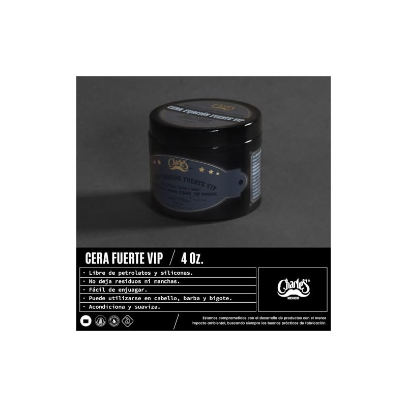 CHARLES MÉXICO - Charle's - Cera para Cabello Fijación Fuerte VIP 113g - Terminado Brillante - Con Aceite de Ricino - Hidrosoluble - Sin Residuos - Pomada para Cabello Barba y Bigote - Ideal Para Estilos Clásicos. 🏆 Reconocido por su excelente relación calidad-precio. Materiales de alta gama y acabados premium. ⏰ Oferta por tiempo limitado. Ideal para quienes buscan lo mejor en calidad y estilo. Producto auténtico con satisfacción total asegurada. ¡No te quedes sin el tuyo y aprovecha esta oportunidad única!