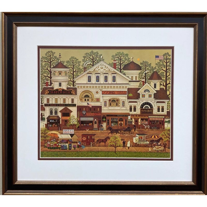 Charles Wysocki "Old Main Street" New CUSTOM FRAMED Art Americana