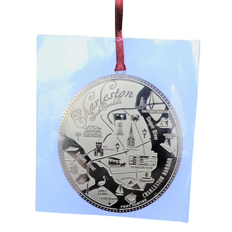 Charleston SC Brass Ornament City Landmarks (Clear Poly Bag)