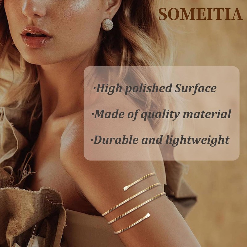 2. High-quality material and comfortable to wear: the gold women's bangles are made of durable metal, are skin-friendly, lightweight and hypoallergenic. Thanks to the smooth surface, the upper arm bracelet is comfortable and stays shiny for a long time.
