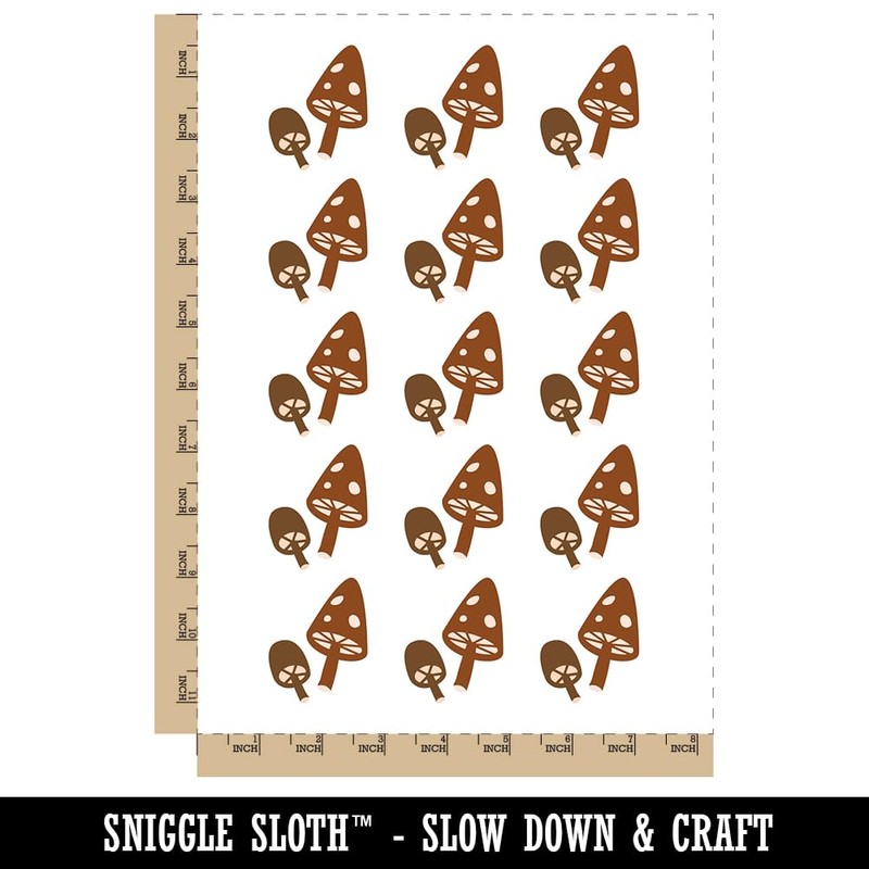 Charming Toadstool Mushroom Pair Temporary Tattoo Water Resistant Fake Body Art Set Collection - 15 2" Tattoos (1 Sheet)