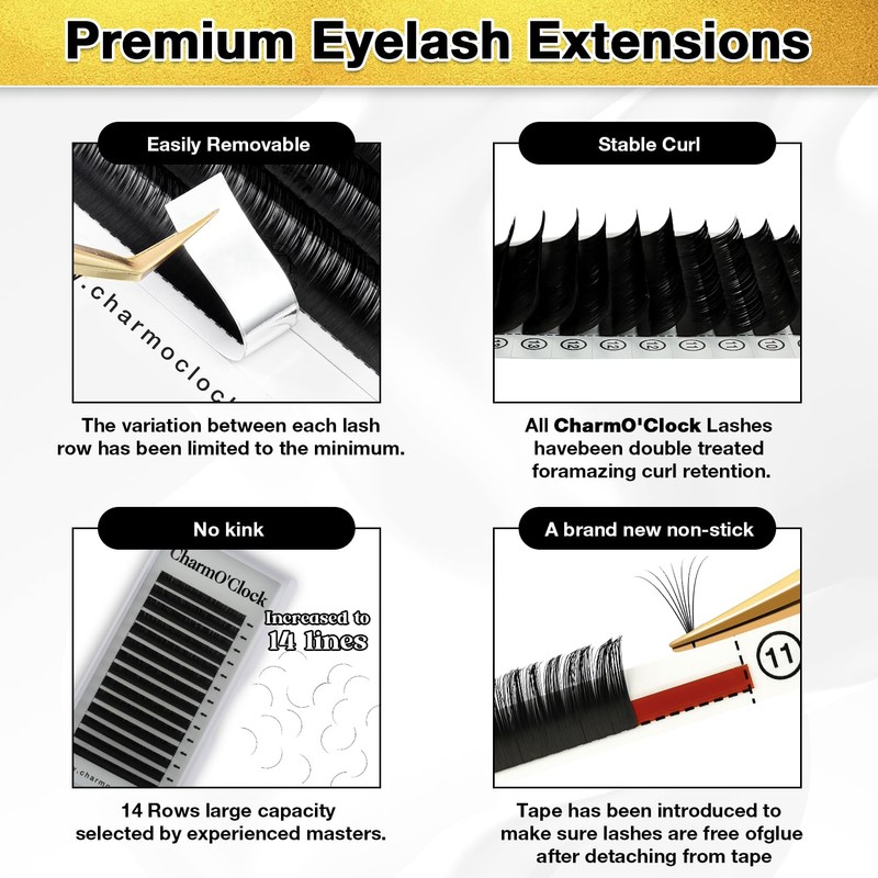- 【Natural CC Effect】CharmO'clock individual lashes feature 0.05mm cashmere with CC curl. 10mm length creates subtle enhancement for natural looks. Perfect for clients seeking understated elegance.