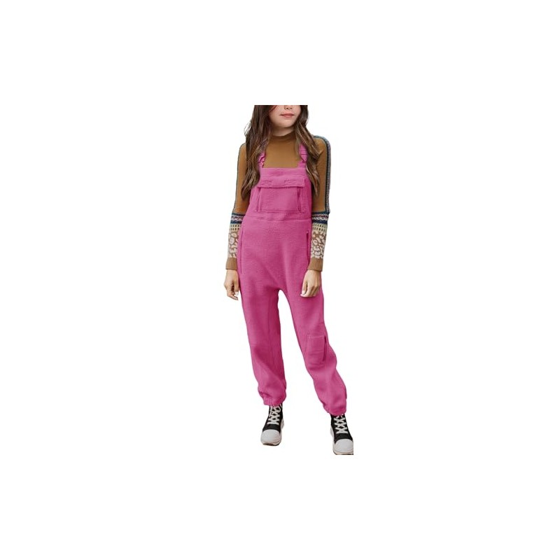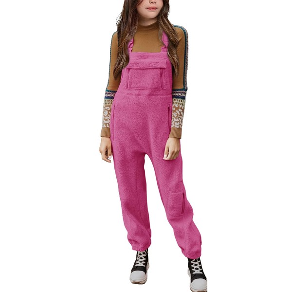 CharmWM Girls Fleece Overalls Warm Winter Loose Casual Adjustable straps Jumpsuits with Pockets 5-14 Years 120-160 Pink