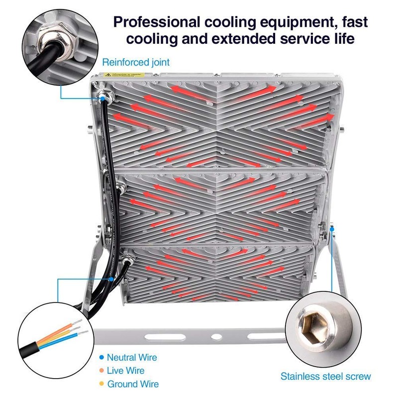 - 【Save on Maintenance】Robust die-cast aluminum housing and shock-resistant PC lens ensure excellent heat dissipation and long-lasting performance. And the floodlight is designed with a thickened fin-type heat sink, which means it acts like a radiator to dissipate heat.