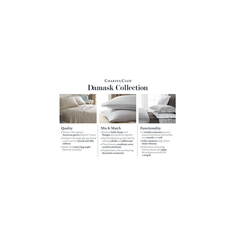 Instantly elevate any bedding ensemble to a whole new level of sleep style and comfort with the irresistibly soft Supima cotton and lustrous stripes of this Damask sheet set from Charter Club.