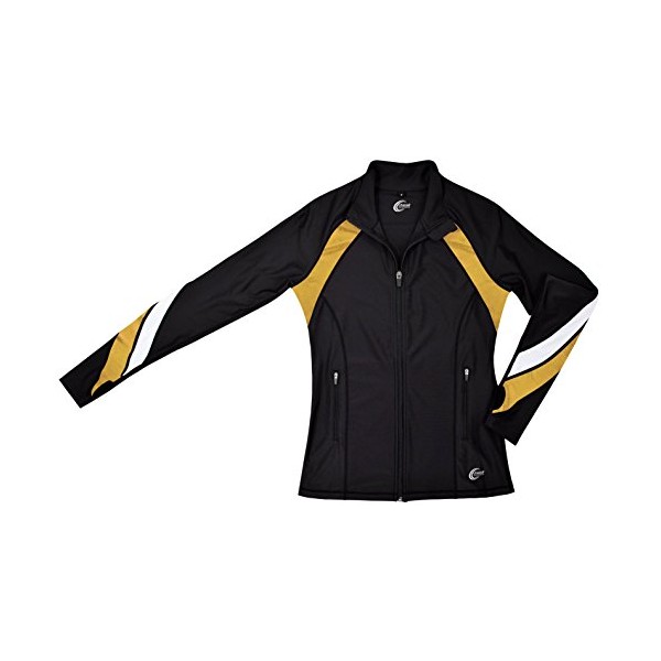 - Comfortable Poly/Spandex material with metallic and white accents