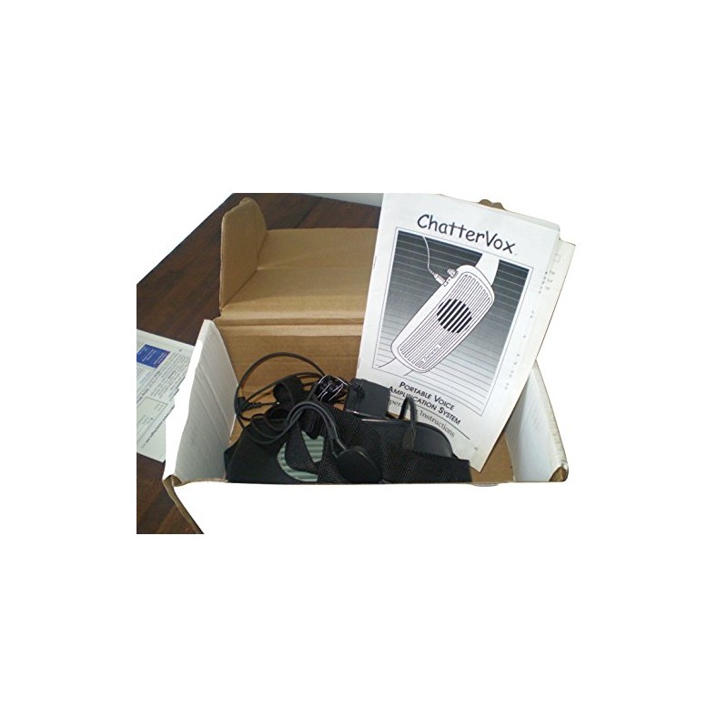 The Chattervox is a compact personal amplification system that provides up to 15dB of a voice boost for mild to moderate speech impairments. Simple to operate with only one user control: the combined volume control/power switch. An affordable solution for people with low-volume speech. Includes: Six AA NiMH rechargeable batteries Plug in charger for up to 14 hours of continuous talk time Storage case Belt extender Does not include microphone Entire system can be recharged overnight (Option of using simple AA battery cells if rechargeables are insufficient; no expensive custom battery pack is required). Size: 8" W x 2.9" H x 2.1" D Weight: 355 gm (.78 lbs.) Power requirements: 9VDC Nominal gain before feedback: 15dB Max power output: 5W Min (at 4 ohms speaker load)
