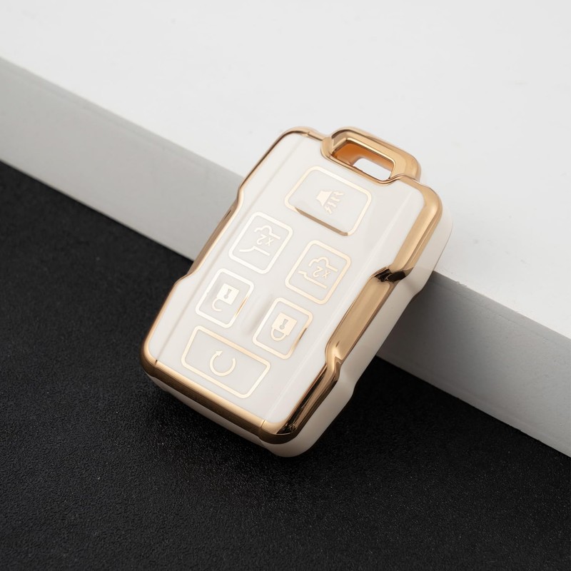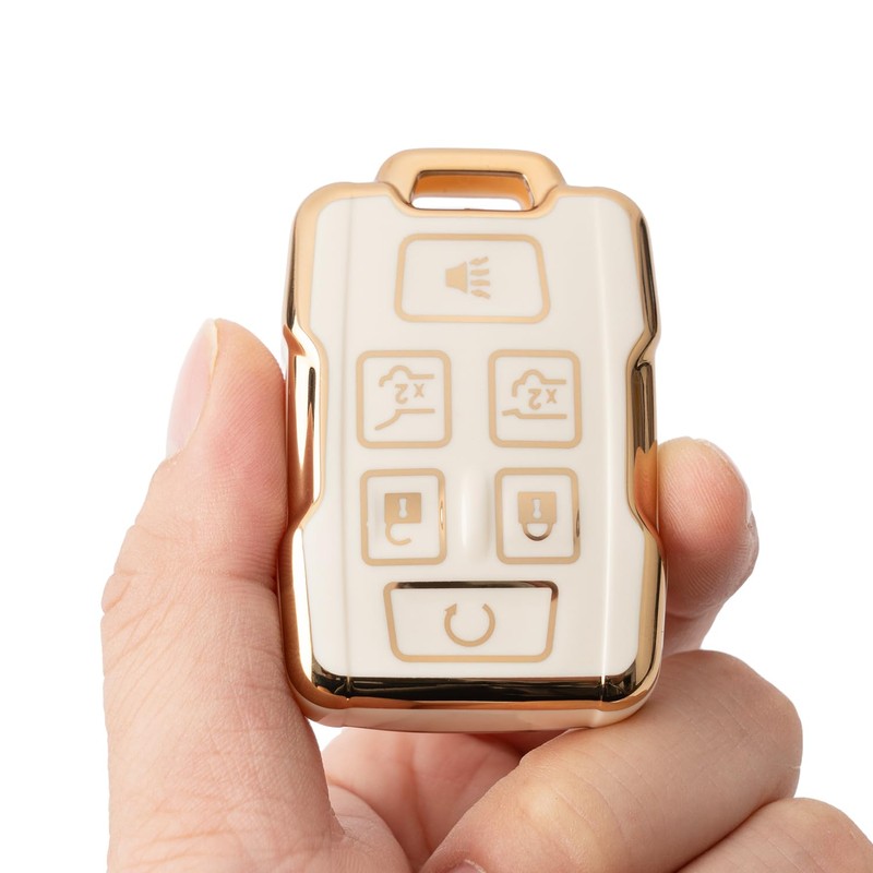 CHATYYD for GMC Key fob Cover with Keychain, Soft TPU Car Key Cover Case for Chevy Tahoe Suburban 2015 2016 2017 2018 2019 2020 GMC Yukon/ Yukon XL Accessories(White)