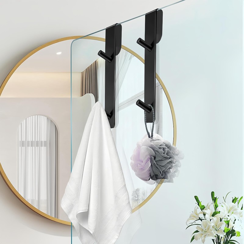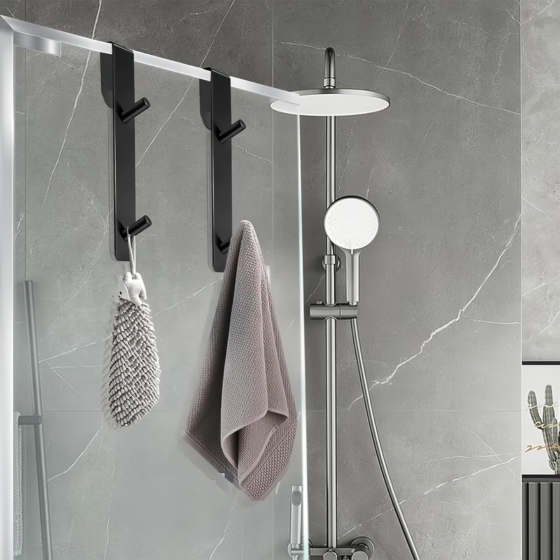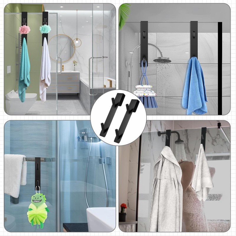 - DOUBLE HOOK DESIGN Hook shower screen features a unique double hook design, which can hang more items than a single hook. This significantly increases the use of space. Whether towels, shower sponges or other bath utensils, everything can be hung neatly, shower cubicles hooks and meets your diverse requirements for bathroom storage.
