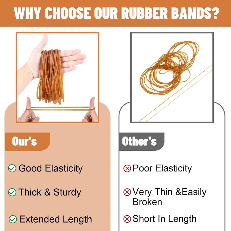 • These high quality rubber bands have good elasticity and sufficient thickness, are not easy to break, and can be used for a long time.