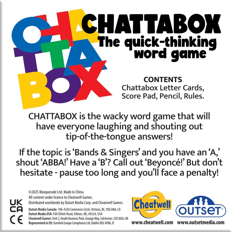 - Chattabox is the wacky word game that will have everyone laughing and shouting out tip-of-the-tongue answers