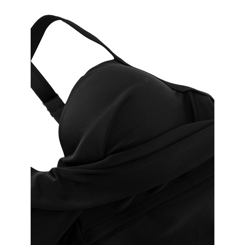 - Ruched Tankini for Women: Swimsuit tank top + boy shorts bottom. The tummy control tankini looks like one piece slimming bathing suits for women.