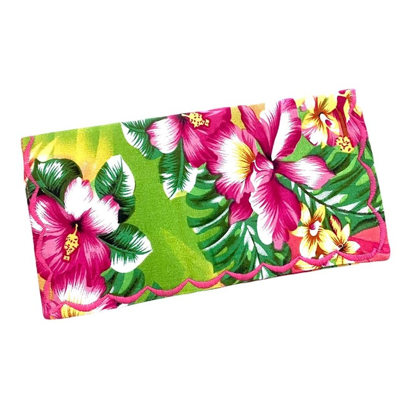 Checkbook Cover - Billfold Wallet - Tropical Flower Fabric Check Case - Wallet for Receipts