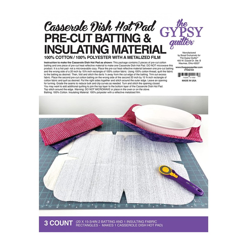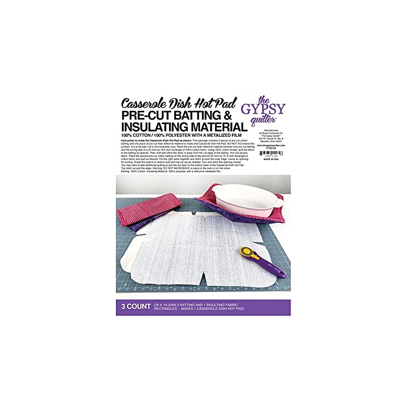 - 3 Count. 20 x 15-3/4 inch. 2 Batting and 1 Insulating fabric rectangles. Makes 1 Casserole Dish Hot Pad.