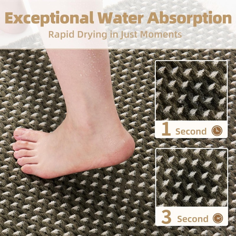 - Super Absorbent & Quick Dry: Our bath mat is woven from premium polyester yarns, offering excellent water absorption. It keeps your feet dry and your bathroom floor clean. The unique 3D weaving maximizes absorbency, ensuring fast and efficient drying. Thanks to its breathable design, this quick dry bath mat works better than standard bath mats.