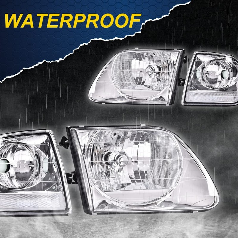 CHEDA Headlights Assembly, Compatible with 1997-2003 Ford F150 Pickup/97-02 Ford Expedition (Clear Lens Chrome Housing Clear Reflector) Headlamp Faros Conjunto De Faros