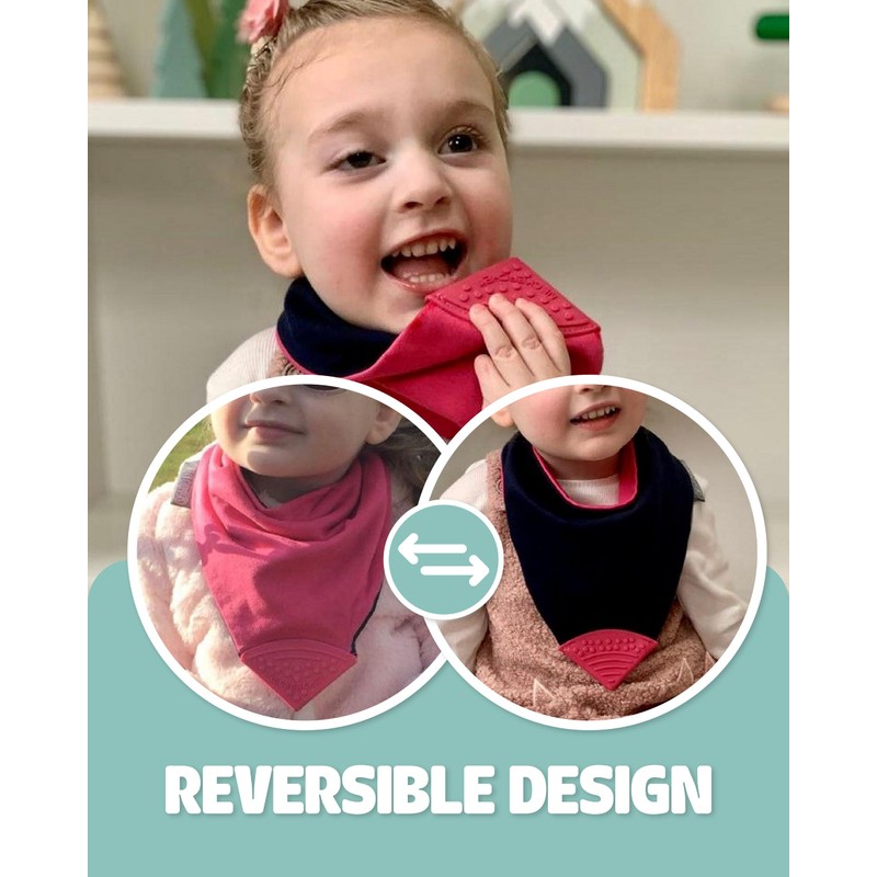 - 👉REVERSIBLE BANDANA BIBS WITH ORAL SENSORY CHEW: This neckerchew offers the ultimate 2-in-1 bib and chew corner to solve multiple needs. The bibs are reversible so perfect for on the go, or to match with different outfits.