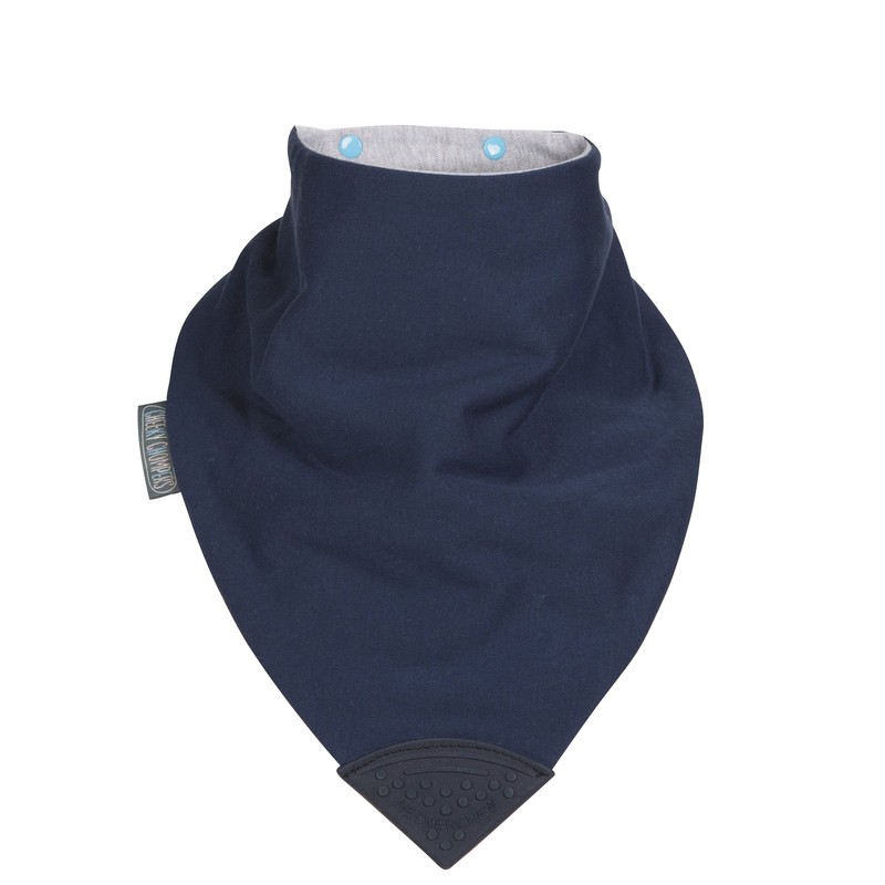 Cheeky Chompers Bandana Bib with Sensory Chew | Special Needs | Single Reversible Bib with 2 Designs: Navy & Grey | Oral, Motor, Anxiety Relief | Large Size for Older Children & Adults