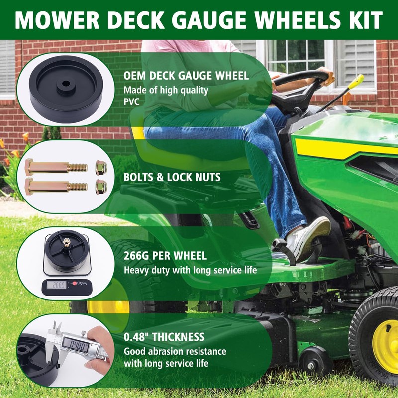 - APPLICATION: The mower deck wheel protects the cutting deck from scalping your lawn as your tractor moves over slopes or ruts. It is mainly used for lawn tractors, garden tractors, riding mowers, rider mowers, 32" 38" 42" 44" 46" 48" lawn mower deck, other general products like snow blowers, snow throwers, edgers, garbage cans, etc