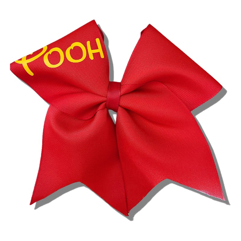 Cheer bows are hand crafted and are made with high quality 3 inch sublimation printed grosgrain ribbon. Each hair bow has a covered hair elastic firmly attached to the back. Bows are heat sealed and stiffened for long lasting durability and strength.