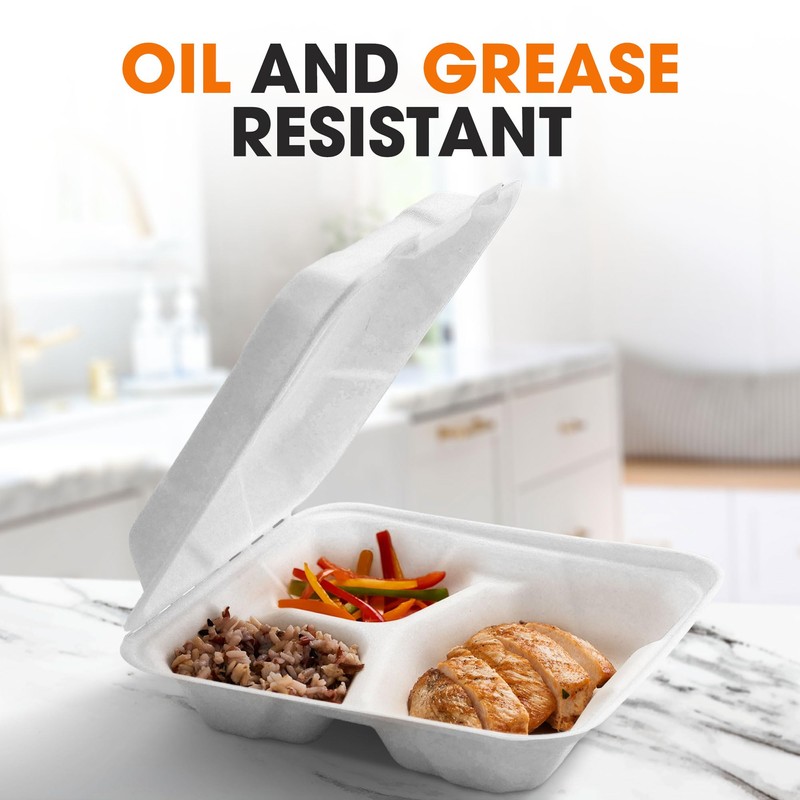 - SUSTAINABLE AND RENEWABLE: Made from 100% sugarcane fiber, these compostable food containers are a tree-free and plastic-free alternative, making them eco-friendly and compostable, unlike plastic containers